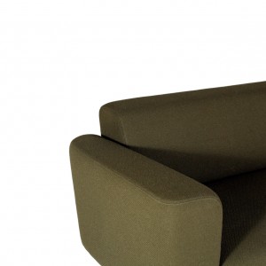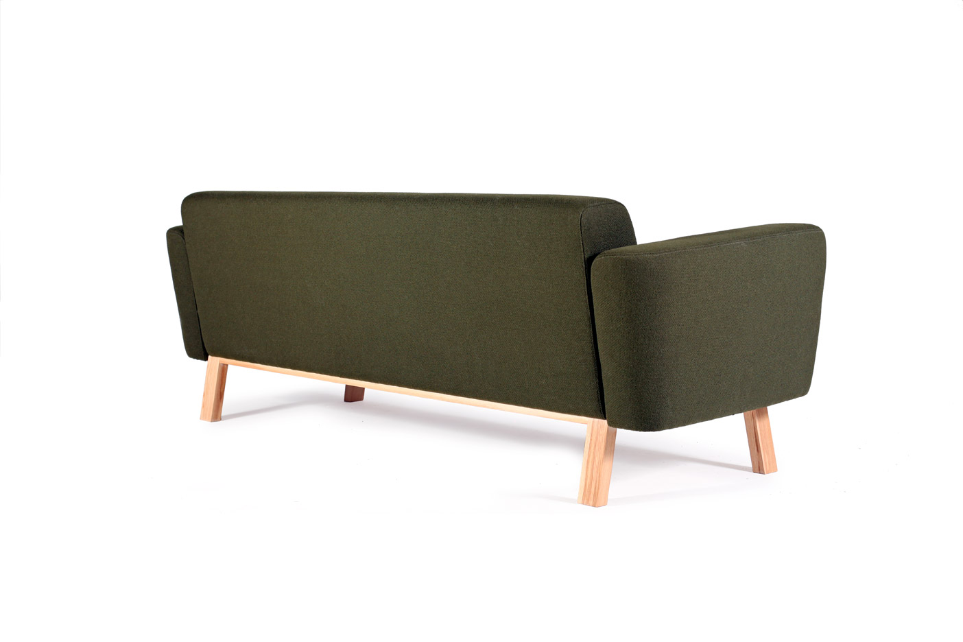 Brad bestaat uit een massief iepenhouten onderframe dat verstevigd is met een stalen raamwerk. Het zit- en ruggedeelte wordt los op het onderframe geplaatst en blijft door zijn vormgeving op de juiste plek staan. Vervolgens worden de robuuste armleuningen eenvoudig ter plaatse op de stalen armbeugels geplaatst en is de bank compleet. De linten die over het rug- en zitdeel zijn gespannen geven een optisch effect van aparte zitplaatsen.